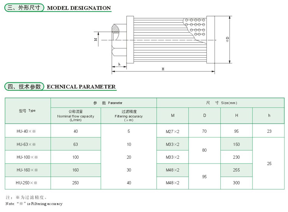 HU回油過濾器直接與回油管路螺紋連接,伸入油箱的油液中,結(jié)構(gòu)簡單,使用安裝簡便。濾芯采用新型化纖濾材,具有通油能力大,過濾精度高,壓力損失小,納污量大等優(yōu)點(diǎn)。