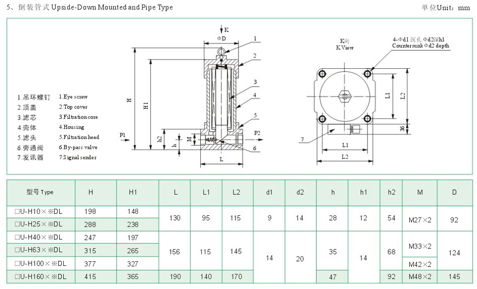 ZU-H壓力管力過(guò)濾器安裝在液壓系統(tǒng)的壓力管路上,用以濾除液壓油中混入的機(jī)械雜質(zhì)和液壓油本身化學(xué)變化所產(chǎn)生的膠質(zhì)、瀝清質(zhì)、炭渣質(zhì)等,從而防止閥芯卡死、節(jié)流小孔縫隙和阻尼孔的堵塞以及液壓元件過(guò)快磨損等故障的發(fā)生